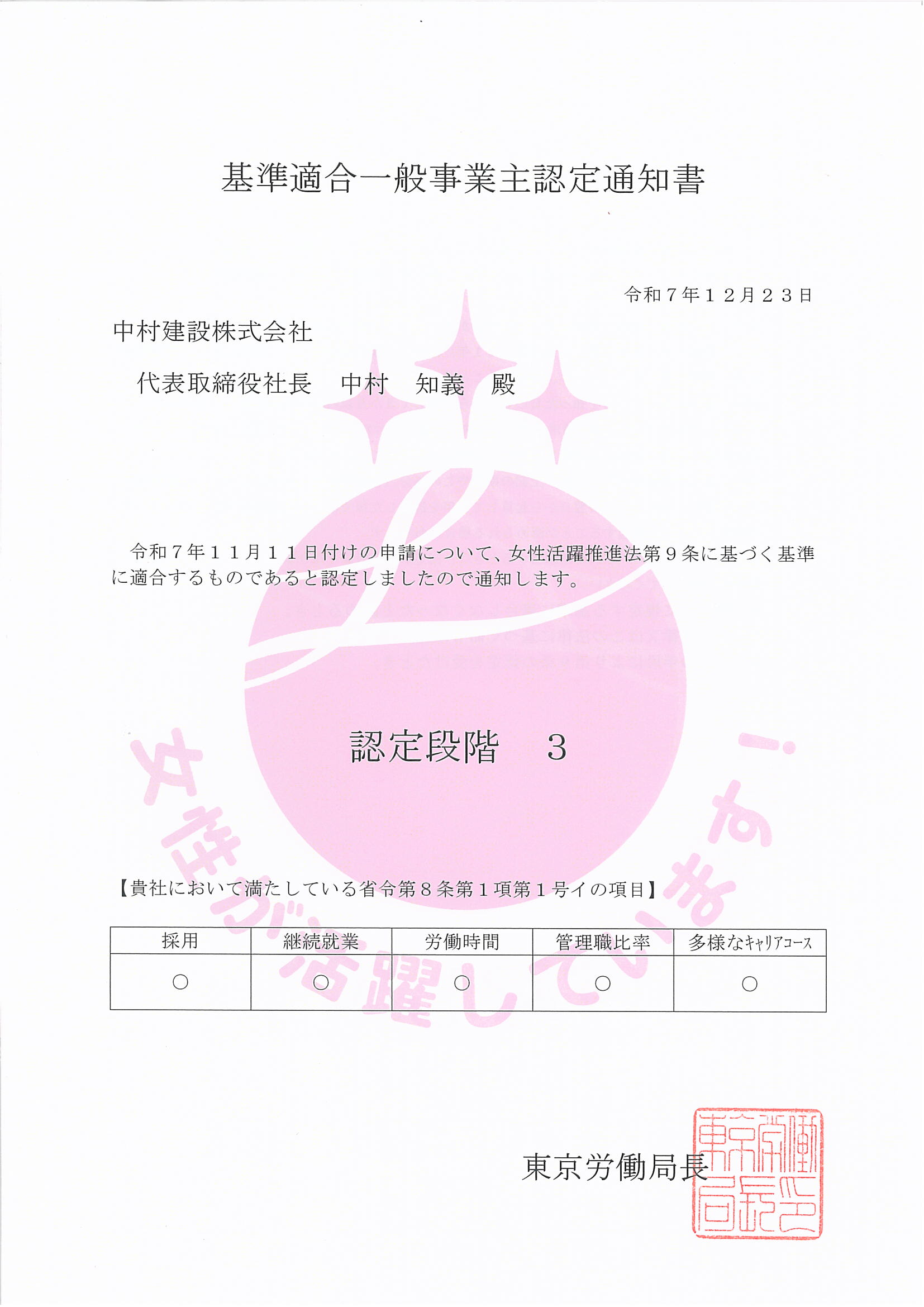 - えるぼし認定3つ星(女性活躍に関する認定3段階)取得