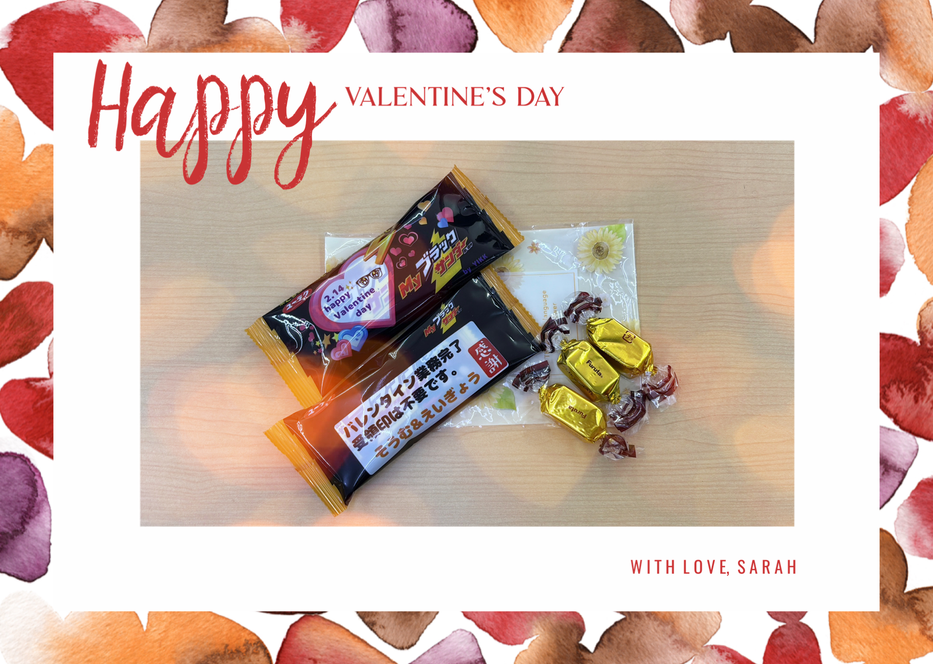 POST:2026.02.20 バレンタインデー🍫✨ ブログ HOMEお知らせバレンタインデー🍫✨ 2026.2.14 今年もバレンタインデーがやってきました‼ 皆さんは、どんな良い思い出がありますか~❓ ちなみに、私はひ・み・つ㊙(笑) 日頃の感謝を込めて、デザインしました😊 今年のデザインはどうでしたか~❓
