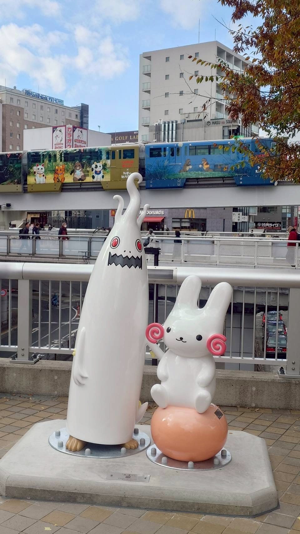立川駅南口デッキ上に【くるりん】、【ウドラ】のモニュメントを設置しました。